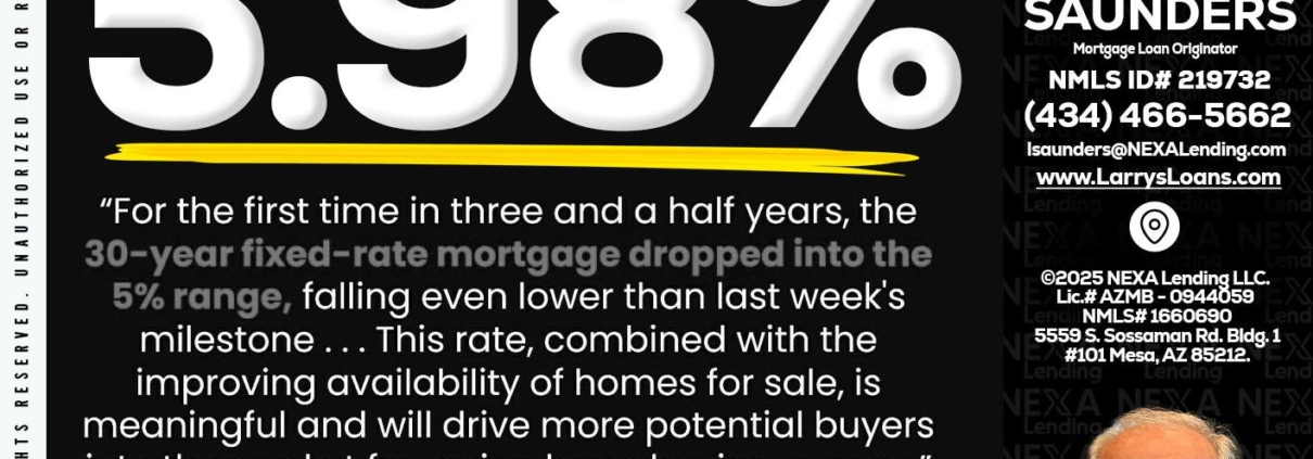 Hi, my name is Larry Saunders. I’m a Loan Officer with NEXA Lending LLC., offering personalized mortgage solutions, fast customized quotes, great rates and service with integrity.