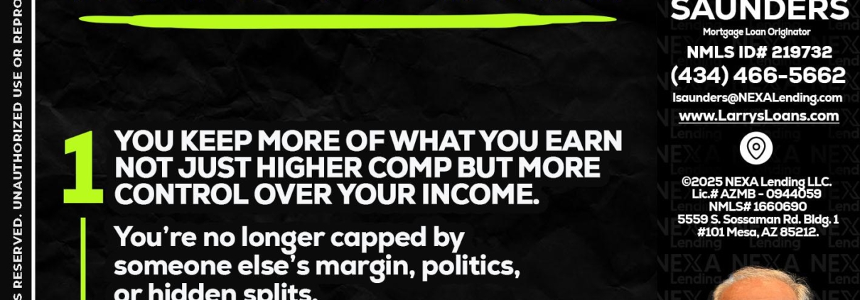 Hi, my name is Larry Saunders. I’m a Loan Officer with NEXA Lending LLC., offering personalized mortgage solutions, fast customized quotes, great rates and service with integrity.