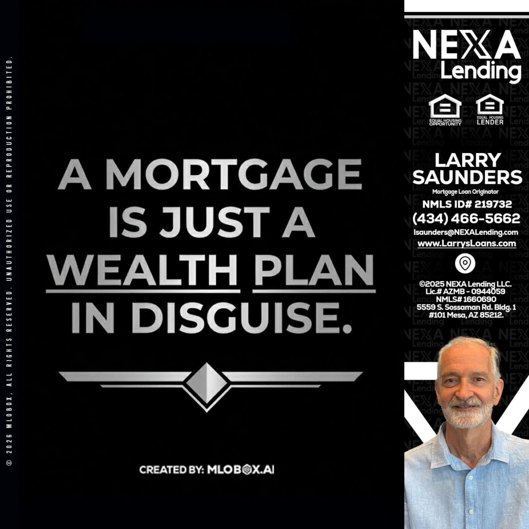 a mortgage is just - Larry Saunders -Mortgage Loan OriginatorHi, my name is Larry Saunders. I’m a Loan Officer with NEXA Lending LLC., offering personalized mortgage solutions, fast customized quotes, great rates and service with integrity.