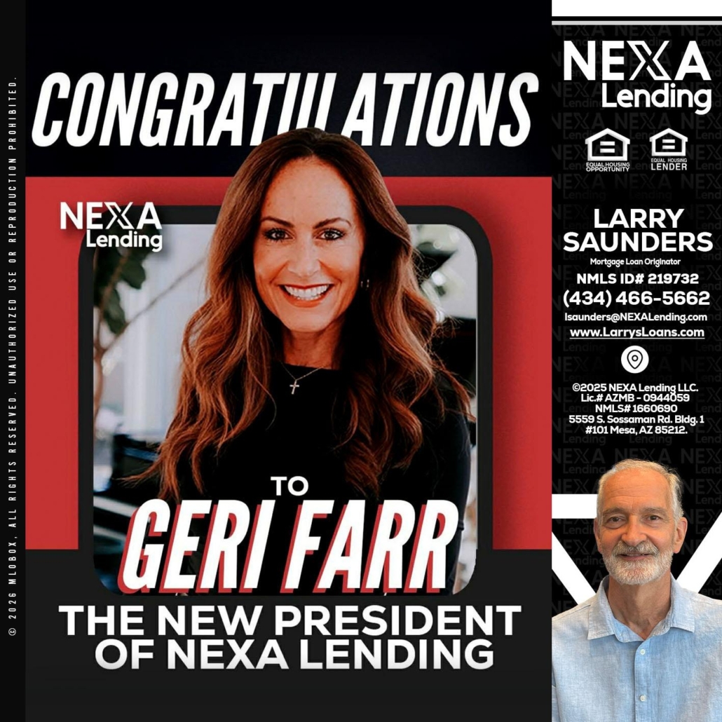 CONGRATULATIONS - Larry Saunders -Mortgage Loan OriginatorHi, my name is Larry Saunders. I’m a Loan Officer with NEXA Lending LLC., offering personalized mortgage solutions, fast customized quotes, great rates and service with integrity.