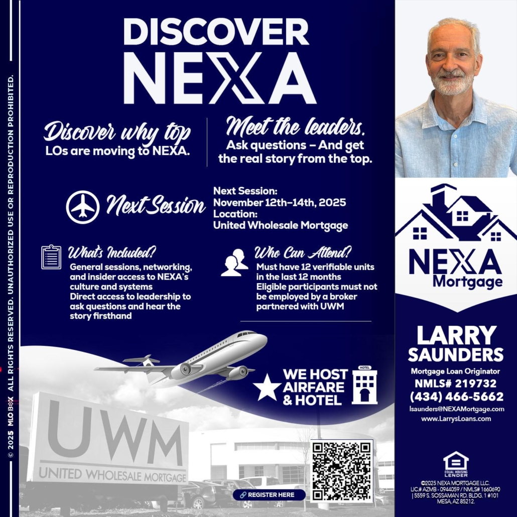 Hi, my name is Larry Saunders. I’m a Loan Officer with NEXA Mortgage LLC., offering personalized mortgage solutions, fast customized quotes, great rates and service with integrity.