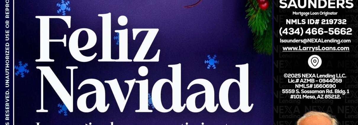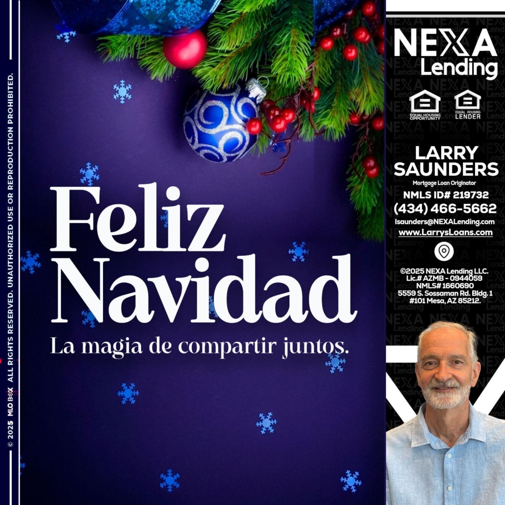 FELIZ NAVIDAD - Larry Saunders -Mortgage Loan OriginatorHi, my name is Larry Saunders. I’m a Loan Officer with NEXA Lending LLC., offering personalized mortgage solutions, fast customized quotes, great rates and service with integrity.
