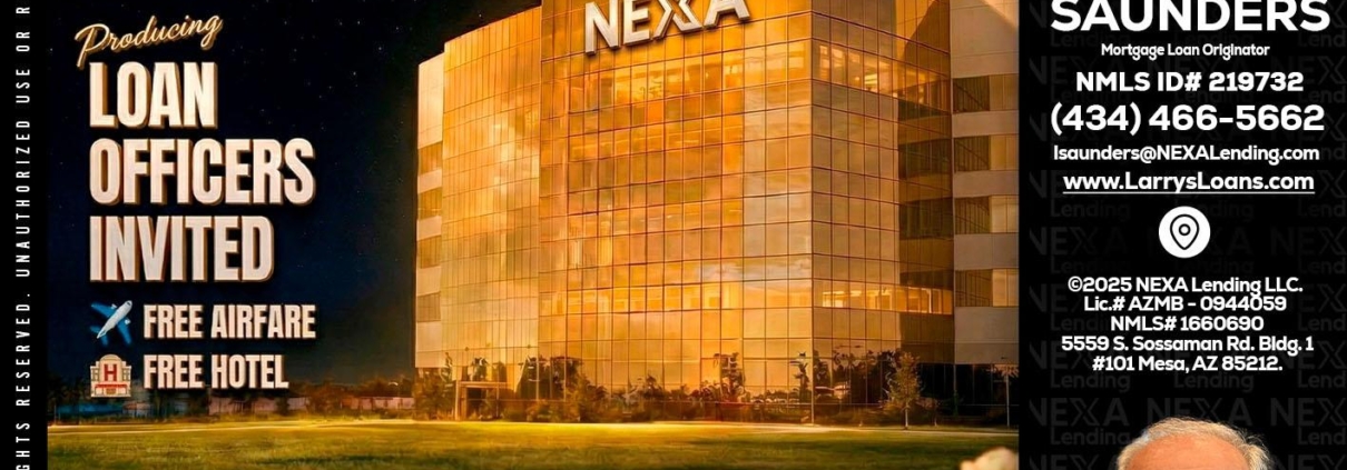 Hi, my name is Larry Saunders. I’m a Loan Officer with NEXA Lending LLC., offering personalized mortgage solutions, fast customized quotes, great rates and service with integrity.
