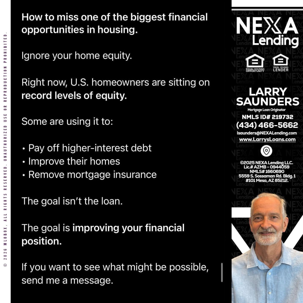 Hi, my name is Larry Saunders. I’m a Loan Officer with NEXA Lending LLC., offering personalized mortgage solutions, fast customized quotes, great rates and service with integrity.
