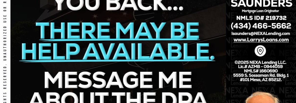 Hi, my name is Larry Saunders. I’m a Loan Officer with NEXA Lending LLC., offering personalized mortgage solutions, fast customized quotes, great rates and service with integrity.