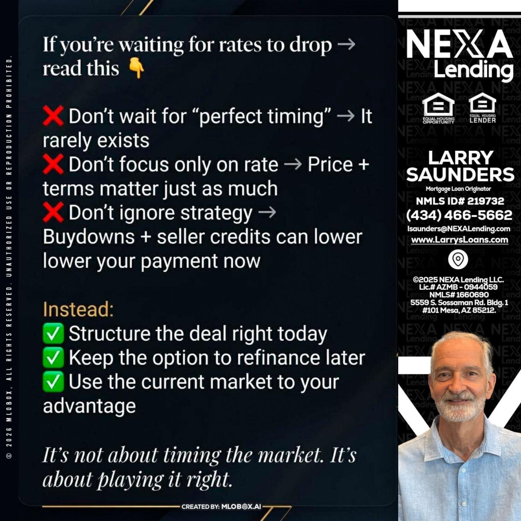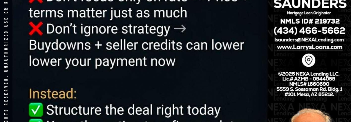 Hi, my name is Larry Saunders. I’m a Loan Officer with NEXA Lending LLC., offering personalized mortgage solutions, fast customized quotes, great rates and service with integrity.