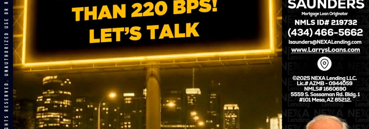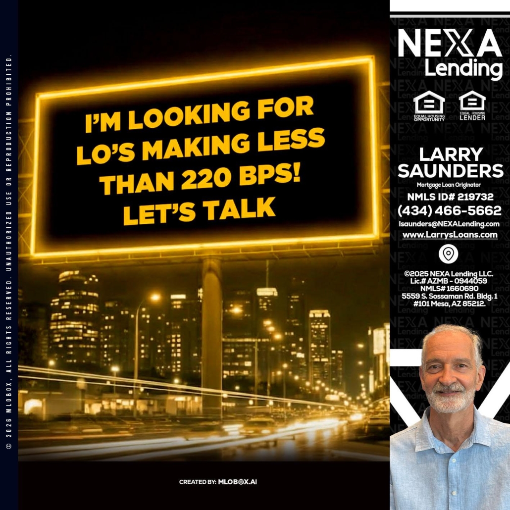 Hi, my name is Larry Saunders. I’m a Loan Officer with NEXA Lending LLC., offering personalized mortgage solutions, fast customized quotes, great rates and service with integrity.