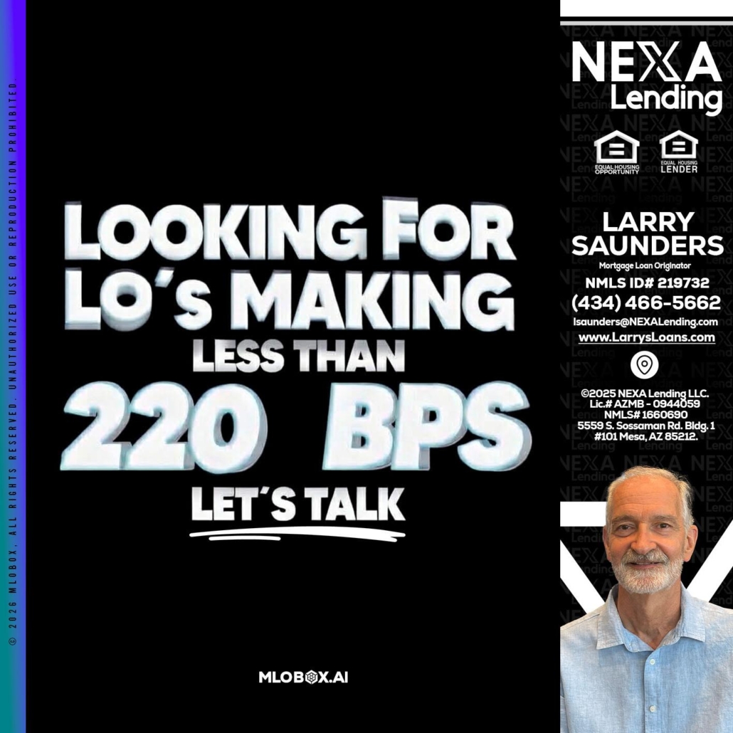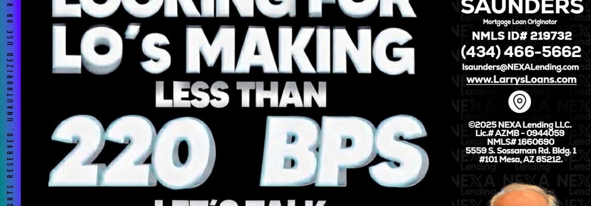 Hi, my name is Larry Saunders. I’m a Loan Officer with NEXA Lending LLC., offering personalized mortgage solutions, fast customized quotes, great rates and service with integrity.