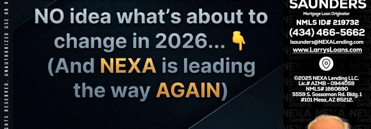 most loan officers - Larry Saunders -Mortgage Loan OriginatorHi, my name is Larry Saunders. I’m a Loan Officer with NEXA Lending LLC., offering personalized mortgage solutions, fast customized quotes, great rates and service with integrity.