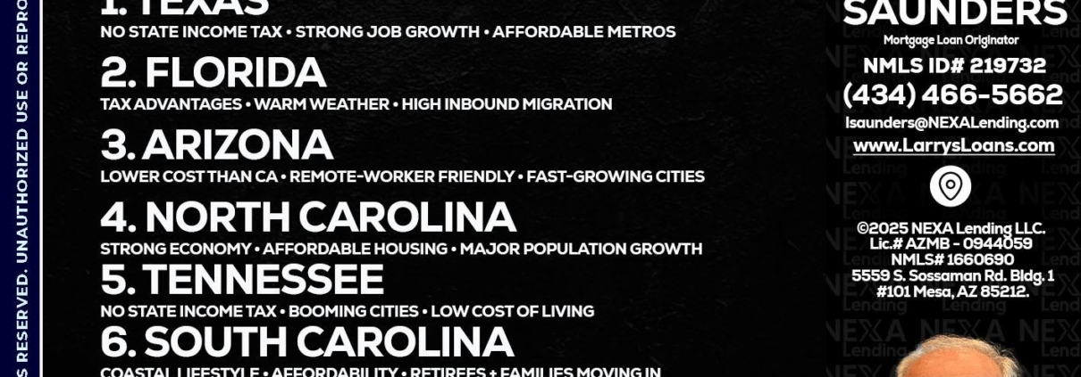 Hi, my name is Larry Saunders. I’m a Loan Officer with NEXA Lending LLC., offering personalized mortgage solutions, fast customized quotes, great rates and service with integrity.