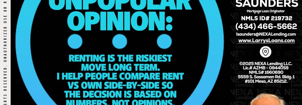 unpopular opinion - Larry Saunders -Mortgage Loan OriginatorHi, my name is Larry Saunders. I’m a Loan Officer with NEXA Lending LLC., offering personalized mortgage solutions, fast customized quotes, great rates and service with integrity.