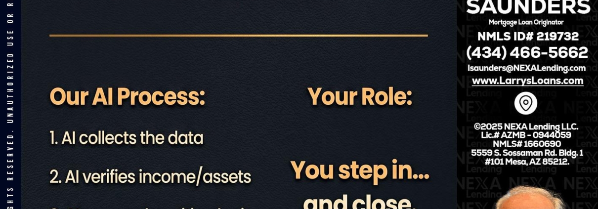 Hi, my name is Larry Saunders. I’m a Loan Officer with NEXA Lending LLC., offering personalized mortgage solutions, fast customized quotes, great rates and service with integrity.