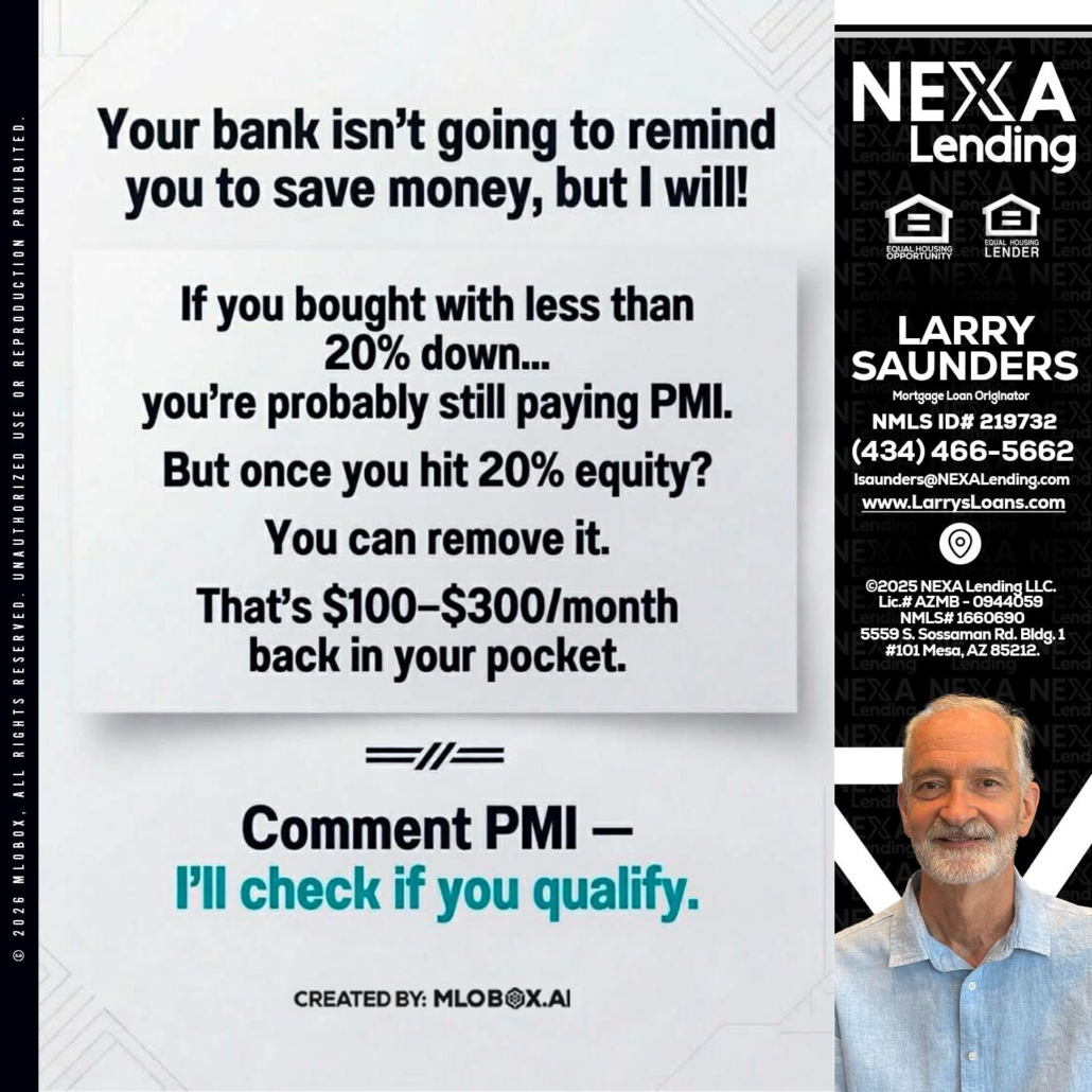 Hi, my name is Larry Saunders. I’m a Loan Officer with NEXA Lending LLC., offering personalized mortgage solutions, fast customized quotes, great rates and service with integrity.