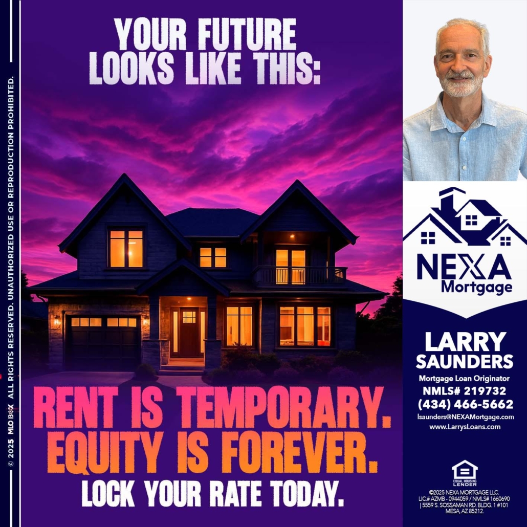 Hi, my name is Larry Saunders. I’m a Loan Officer with NEXA Mortgage LLC., offering personalized mortgage solutions, fast customized quotes, great rates and service with integrity.